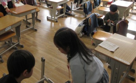 1年間過ごした教室や廊下、下駄箱などを掃除しました。次の学年に向けて黙々と掃除する姿が学校いっぱいに広がっていました。