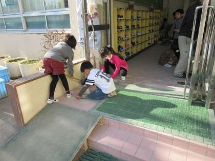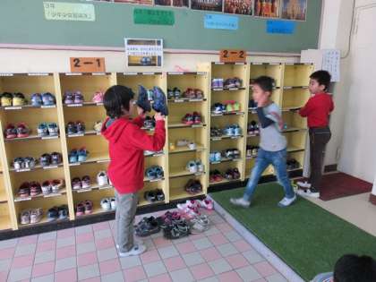 玄関はいつも砂が上がり、何度掃除をしても汚れてしまいます。特に、下駄箱は砂だらけです。2年生はそれを丁寧に集めてくれました。一つ一つの靴の裏を外ではたいて下駄箱に入れ直してくれる子供もいます。一緒に温かい学校を作っていこうねと思いました。