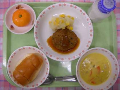 今日のスープは、パンプキンスープでした。かぼちゃの旬は夏から秋ですが、他の野菜と比べて長く保存することができます。そのため、昔は野菜の不足する冬に食べられる緑黄色野菜として大切な栄養源とされていました。今日のスープは、とりがらからとったスープと牛乳などで、たっぷりのかぼちゃをとろとろになるまでじっくりと煮込んで作りました。
