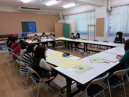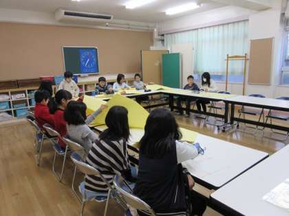 中休み(フリータイム)に、5年生の新しいなかよし班長が集まりました。