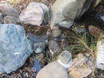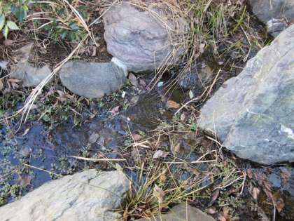 朝の9時から夕方まで、ビオトープに水が流れ小川ができます。昼過ぎになると水がぬるんできます。里山に春が来たようです。