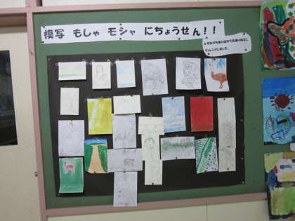 図工室の廊下に一角に名画を模写した作品があります。