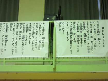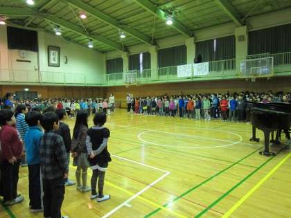 今日の音楽朝会は、「ビリーブ」を全員で合唱しました。このために音楽の時間や各学級でも練習をしてきました。「たとえば君が傷ついてくじけそうになったときは、必ず僕がそばにいて支えてあげるよ…」とても素敵な曲です。