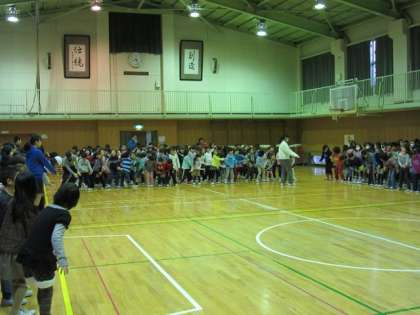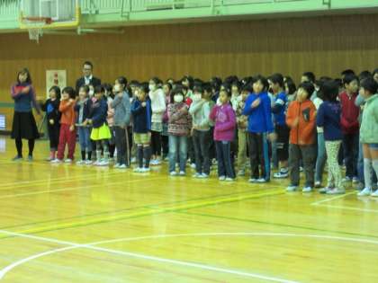 次に曲に合わせて肩たたきを行い歌う準備を整えました。子供たちの気持ちがやわらかく