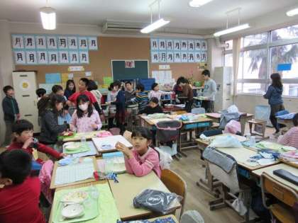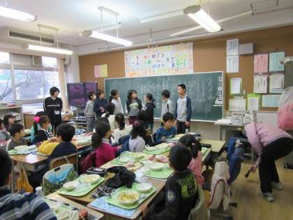 6年生とともに楽しく会食ができたでしょうか。「ごちそうさま」もけじめをつけて行います。その後、協力して各学年ごとに食器を返し片付けました。さあ次は話し合いの時間となります。