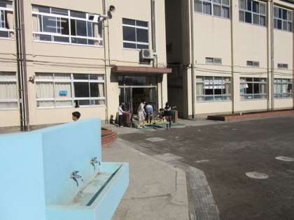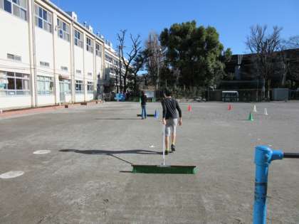 雨上がりの校庭の清掃は大変です。きちんと整地するところから始まります。何度も丁寧に6年生はトンボをかけています。昇降口の清掃も砂を落とすことが大変です。黙々と頑張っている姿に6年生の成長を感じます。