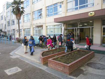下校放送が流れ、5,6年生が家路についています。今日は金曜日です。1週間よく頑張りました。また、月曜日元気に登校してください。