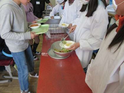 5年1組の給食配膳の様子を見ました。学級全体に落ち着いた雰囲気が育っています。給食当番の配膳の仕方や「いただきます」をする様子から約束事が定着していることが分かります。さらに仰高小を支える最高学年として育っていってほしいと思いました。