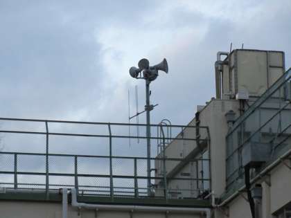 夕方の5時になると屋上の防災無線のスピーカーから音楽が流れ、時刻を知らせます。校舎に明かりがつき、校庭で遊んでいたスキップの子供たちも部屋に戻ります。ビオトープに流れていた水も止まります。また、明日元気で会いましょう。
