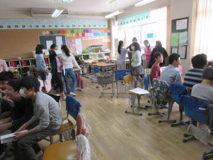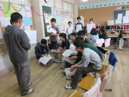 6年生は社会科の学習のまとめとして「世界の国々」の発表を行っています。1組では4つのグループに分かれ、国別に調べた特徴をまとめ発表しています。それまで調べた努力とそれを認め聞こうとする姿勢が素晴らしいと思いました。学習集団として高まっている子供たちに拍手です。