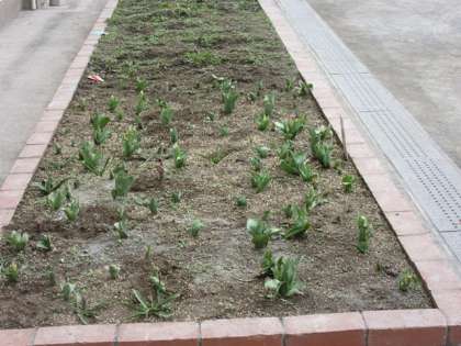 「サクラさいたら1年生、ひとりでいけるかな」で始まる曲『ドキドキドン1年生』を子供たちが歌う季節になってきました。1年生が植えた花壇のチューリップももう花をつけるまで背丈が伸びてきました。校庭に明るい春の日差しが戻ってくるのを待っています。