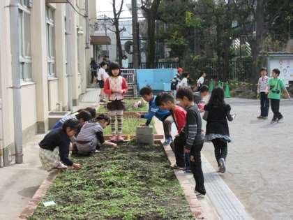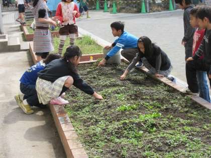 中休み(フリータイム)に2年生は花壇で草とりをしてくれました。1年生と3年生の花壇では芽が伸びていたり花が咲いたりしています。2年生の花壇ではまだ芽が出ていません。それでも子供たちは草取りをして待っています。素敵な心をもっている子供たちです。