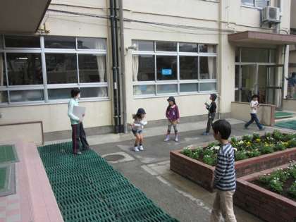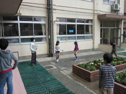 先生の前に列を作り、一人一人縄跳びの検定を行っています。とても上手になっているので先生から「上手になったね」とほめられていました。子供たちの成長した姿を見ることができとても嬉しく思います。