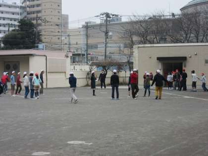 雨がぽつりぽつり落ちてくる空模様の中、子供たちは残り少ない学級の時間を楽しんでいました。男の子も女の子も歓声を上げキックベースに興じています。心から笑える体験をいつまでも思い出に残してください。