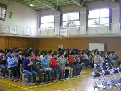 卒業生を迎える5年生の演奏が日に日によくなっています。リコーダーの演奏で式場の雰囲気を作ります。子供たちの気持ちが高まってきました。この練習を通し在校生代表という思いが育っています。