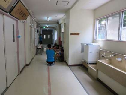 5年生は明日から山中湖移動教室です。今日は校医さんの事前検診を受けました。保健室前で順番を待っていました。