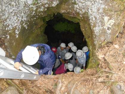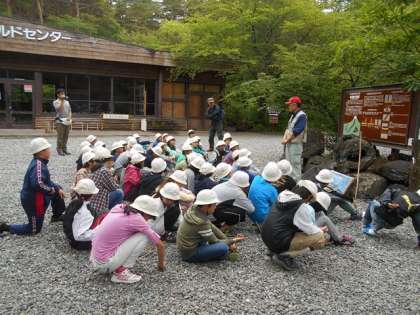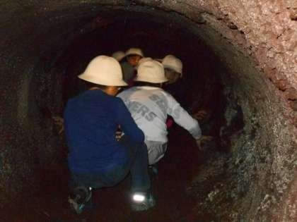 3日目は河口湖フィールドセンターを訪れ、ガイドさんの先導で富士山から流れ出た溶岩が作った溶岩樹形の中に入ってみました。子供たちの歓声が聞こえるようです。
