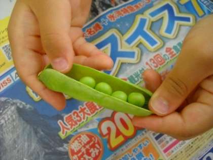6月8日(月) ☆1年生がさやをむいたグリンピース☆