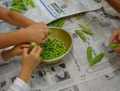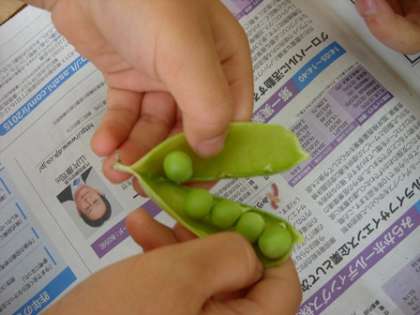 グリンピースのさやむき(1年生)