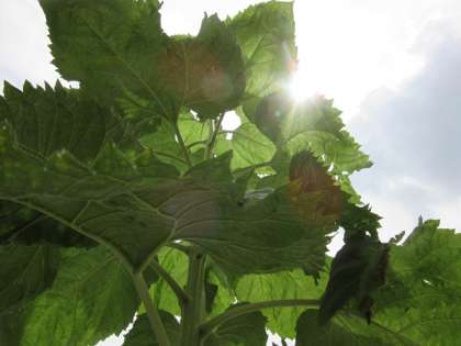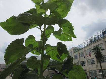 太陽を浴びて、花壇のひまわりが輝いています。週が明け、子供たちが元気に登校してきました。