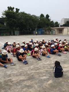 4年生は、竹岡自然教室に元気に出発しました。天気は曇り。楽しい思い出を作ってほしいです。