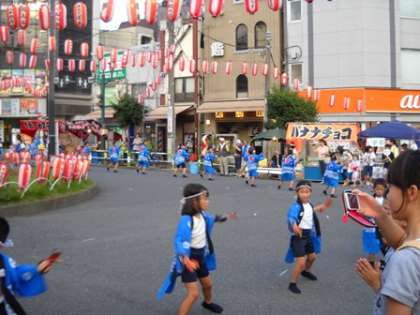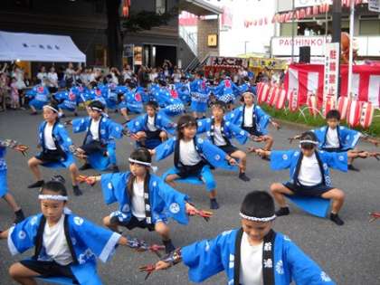 巣鴨駅南で行われた、巣一商店会の盆踊りで、3年生がよさこいを披露しました。たくさんの拍手がありました。