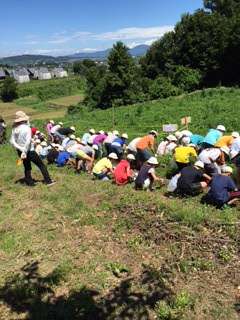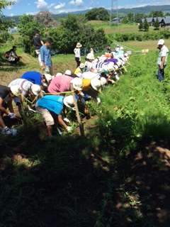 畑でジャガイモ掘りをしています。カレーづくりに使います。残りは家庭にもって帰ります。