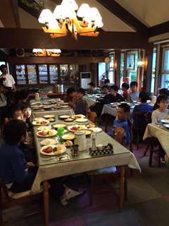 夕食の時間となり、食堂に集まりました。いただきます。子供たちの食欲は旺盛です。