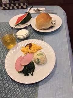 ペンションでの最初の朝食です。