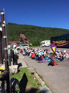 大河原峠に到着しました。これから入山式の後、登山を開始します。