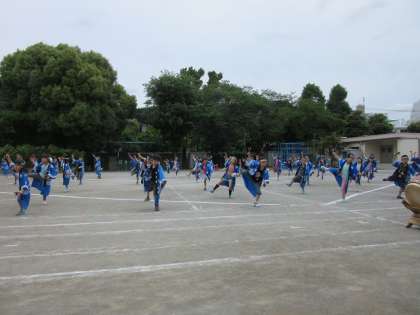 今年の3年生の「仰高よさこい2016」は、アップテンポの軽快なリズムな曲にのせ、鳴子を鳴らしがら踊ります。やる気いっぱいの子供たちです。