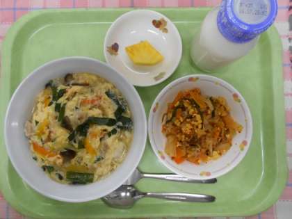 今日は1学期最後の給食でした。暑さで食欲も落ちる時期なので、今日は食べやすいクッパが中心の献立でした。