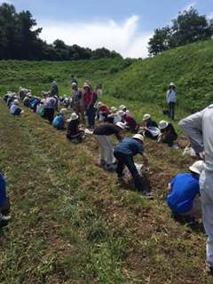 ジャガイモ畑でスコップで見つけています。大きなジャガイモが出る度に歓声が上がっていました。