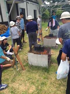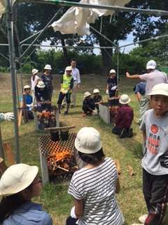 ご飯を担当するチームは飯ごうを焚いています。