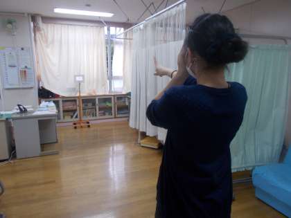 感染予防対策として、斜眼器は使わずに自分の手で目を隠して検査をしました。