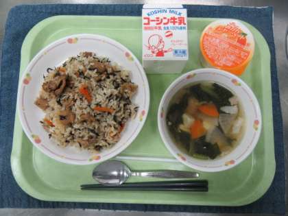 ※本日はデザートにみかんシャーベットがつきました。溶けないように調理員さんが各クラスを回って、みかんシャーベットを届けました。