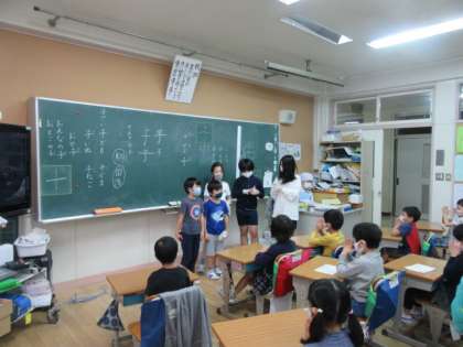 ※写真は牛乳パックのお手伝いに、1年2組に来てくれた6年2組のお兄さん、お姉さんです。最後はお礼のあいさつをして感謝の気持ちを伝えました。