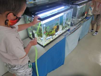 校内で、水槽や階段の高さ、ドアの幅など、長さを写し取って、教室で見せ合いました。