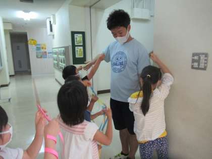 比べ方がわかってきたところで、テープで物の長さを写し取る学習をしました。
