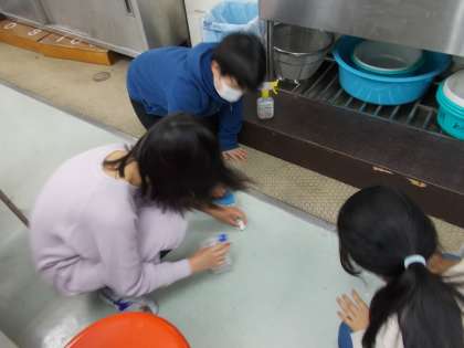 その後、クエン酸や重曹を使って学校の掃除をしました。今日の学習をもとに、家庭でも掃除をしてくるよう課題を出しております。簡単でよいので、ぜひ家庭でも掃除をして、実践力を高めてほしいと思います。