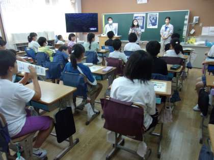 教室では、ごみを減らすためにできることをみんなで考えました。