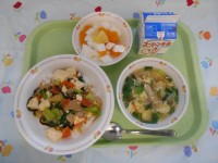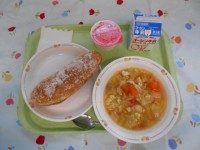 牛乳、揚げパン、ABCスープ、シャーベット今日は1年生のリクエスト給食です。