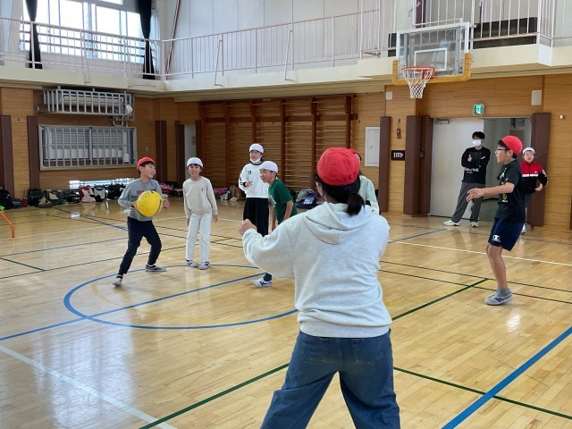 体育の学習で取り組んでいた「タッチバスケットボール」という競技。