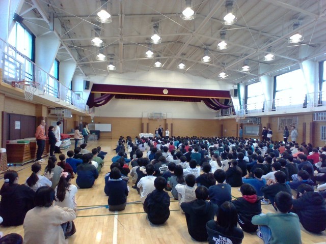 1月13日の朝、全校朝会を実施しました。豊島区の未来子ども会議に参加した児童がどんなことを話し合ったか発表しました。「小学生がクリエイティブに過ごせる豊島区にということで、スポーツやイベントを通して、小学生のアイディアが活かせるような取り組みを考えました。」といったことや「外国の方々が住みやすい豊島区にするためにはというテーマで話しました。外国人の方々が参加しやすいイベントを積極的に実施したり、お互いにコミュニケーションを取り合う場をたくさん創る」といったことについて発表しました。