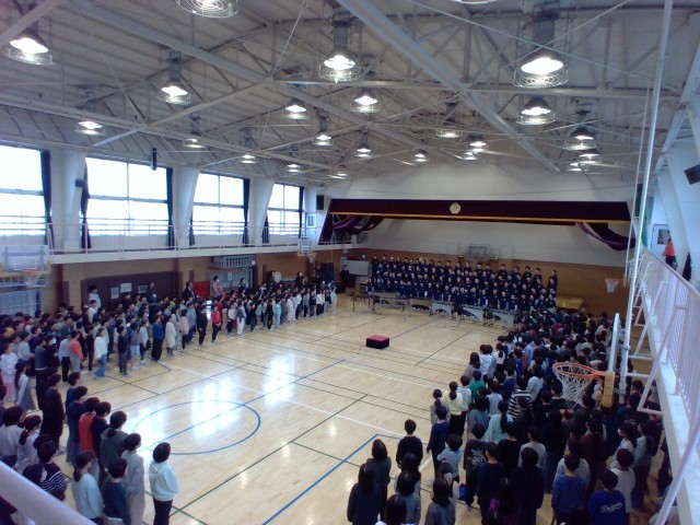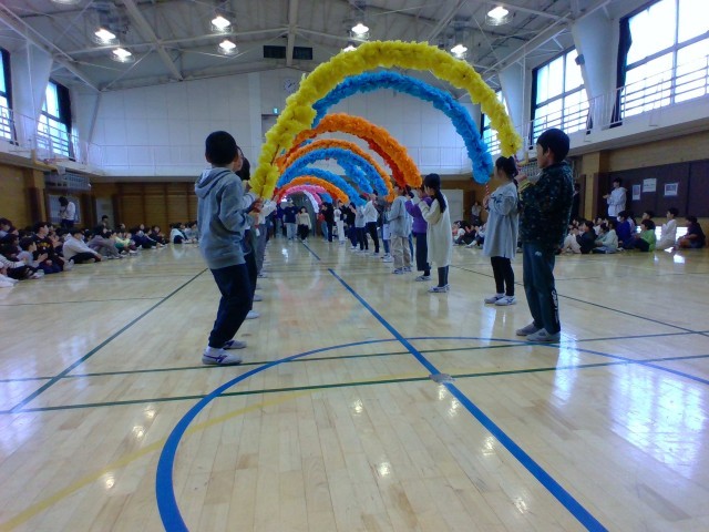 6年生の卒業まであとわずかとなってきました。そして今日は「6年生を送る会」がありました。1年生が心をこめて作った王冠をかぶっての入場です。6年生はおそろいの絆Tシャツです。1年生から5年生は呼びかけで6年生への感謝の気持を伝えました。6年生は迫力ある演奏と気持ちのすごく伝わる合唱で応えました。会場が「さすが6年生!」という空気に包まれました。その後、全校児童で「ありがとうの花」を歌いました。6年生の合奏・合唱の後で、体育館がとっても素敵な空気に包まれました。卒業まであと18日。みんなで1日1日充実した日々を過ごしていきたいです。