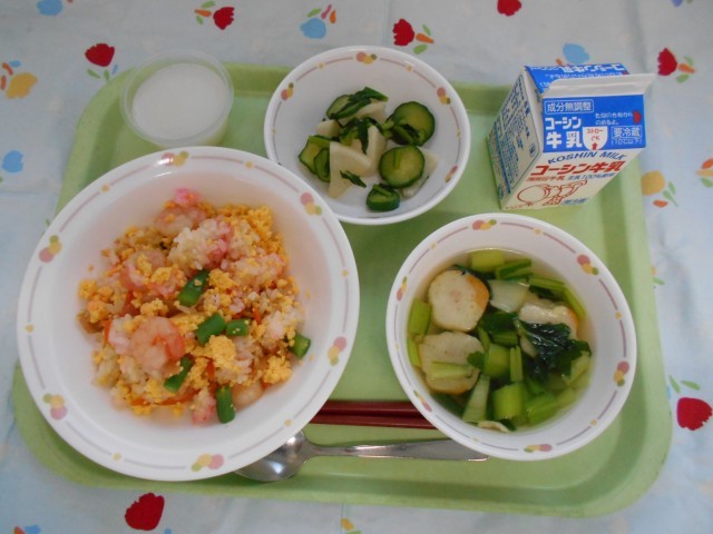 牛乳、お花見ちらしずし、カブのゆず風味、澄まし汁、乳酸菌ゼリー