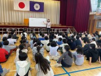 11月8日、6年生は理科室で実験をしていました。理科では「大地のつくりと変化」という単元の中で、地層を作ってみるチャレンジ実験があります。水を入れた透明な水槽の中に、プラスチックの板を通して、砂や泥を混ぜた水を流し込みます。しばらくそのままにしておくと、水槽の中に2つの層ができています。これをもう一度繰り替えしてみると、はっきりと層ができているのが確認できます。