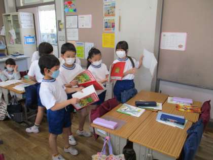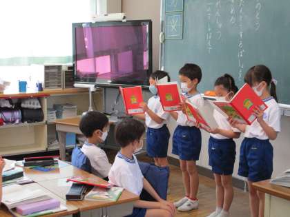 音読発表会では、会話の部分の読み方を変えたり、身振りで様子を表したりして発表しました。また友だちの発表を聞いて、「とても気持ちが伝わったよ。」「大きな声で言えていてよかったね。」と良さを認めて学習を進めることができました。
