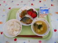 *今日はサンマを細く切ったものを揚げて甘辛い味をつけて、しょうがの千切りを炊き込んだご飯に混ぜてあります。サンマには血液をサラサラにし体に悪いコレステロールを追い出す働きがあります。