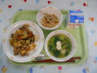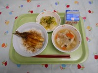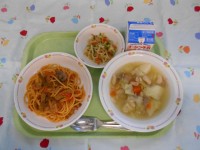 *今日のスープにはキャベツがいっぱい使われています。キャベツはヨーロッパの地中海沿岸が原産地で120年くらい前にオランダ人が長崎に伝えました。キャベツは栄養たっぷりでビタミンC,ビタミンAが多く含まれ胃の調子を整えたり貧血を防いだりします。